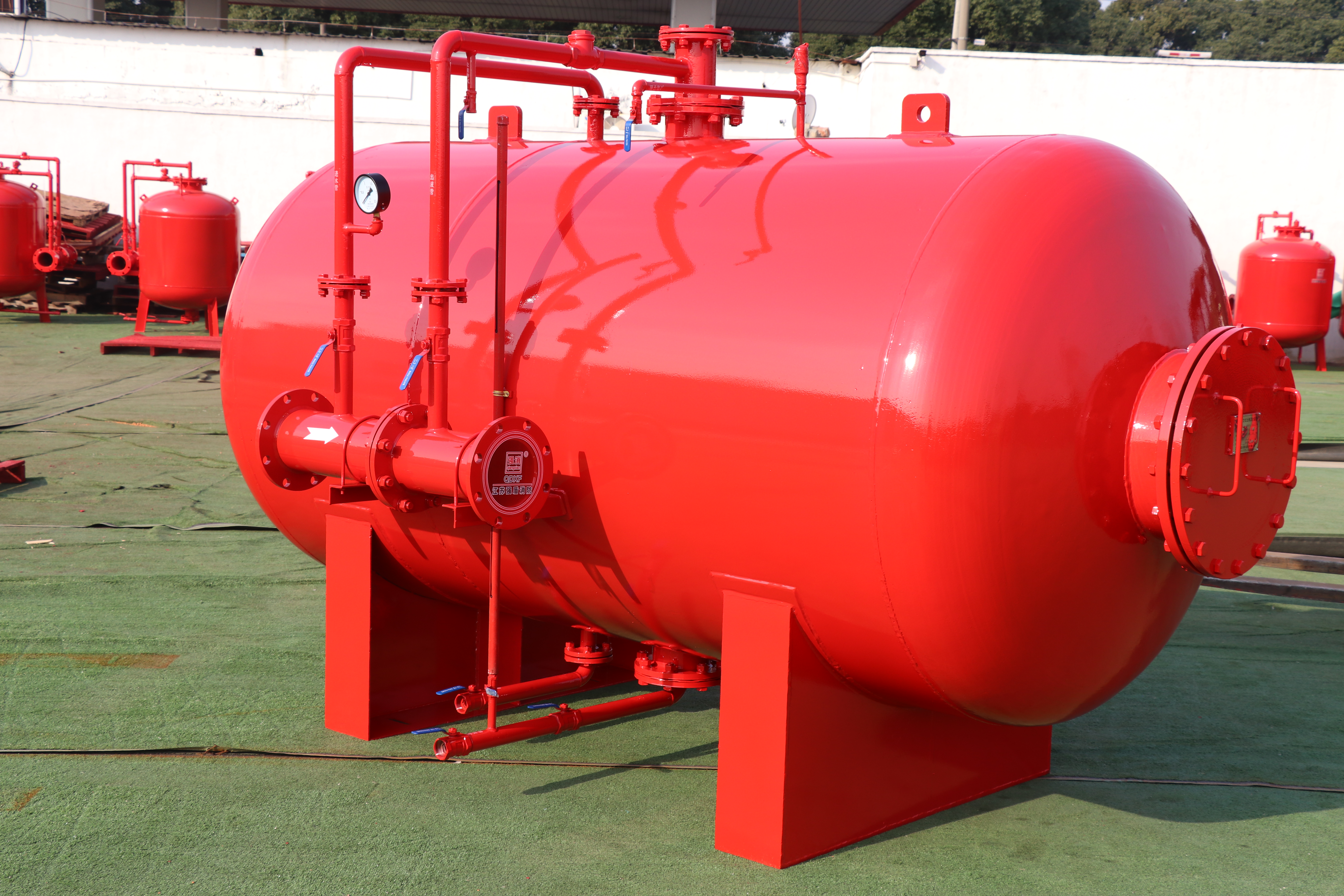壓力式比例混合裝置俗稱為消防泡沫罐,主要特點(diǎn)在于流量大、壓力范圍廣、壓力損失小的特點(diǎn),在各種高、中、低倍數(shù)的泡沫滅火系統(tǒng)中均能夠得到廣泛的應(yīng)用,按結(jié)構(gòu)可以分為立式和臥式,壓力式比例混合裝置是由壓力罐、膠囊、比例混合器、安全閥、排氣閥、壓力表、單向閥以及各類控制閥管道而組成的混合裝置。