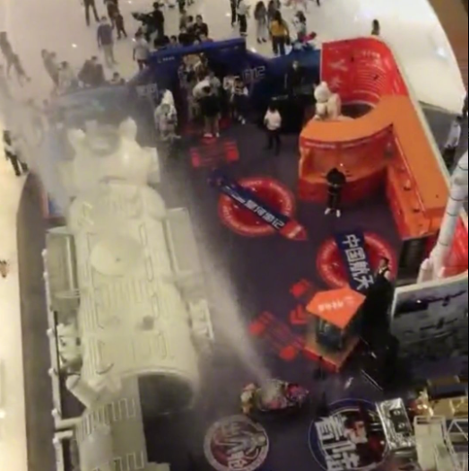 據(jù)了解,當時現(xiàn)場有一臺電視被完全澆壞了,并且中間的球幕影院也是近期剛剛修好的!