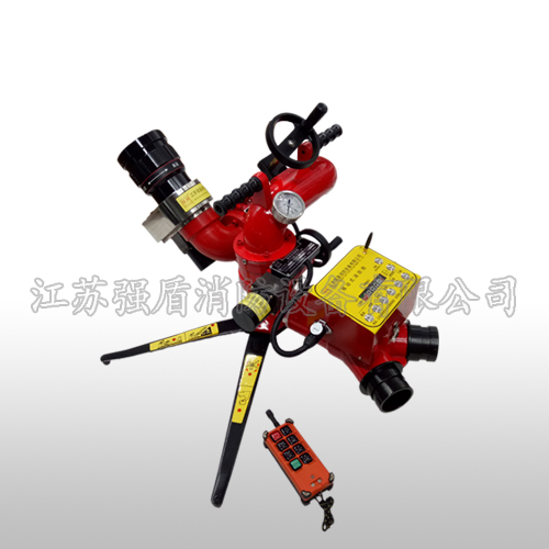 消防炮采用輕質鋁合金制造,既可以保證耐壓等.強度又可以降低消防炮體重量,便于消防隊員操作。遙控器采用脈沖波技術將接收器和發射器通過相同波段同一頻率形成波段信號聯通。遙控發射器在無障礙情況下可在消防炮300米內使用。